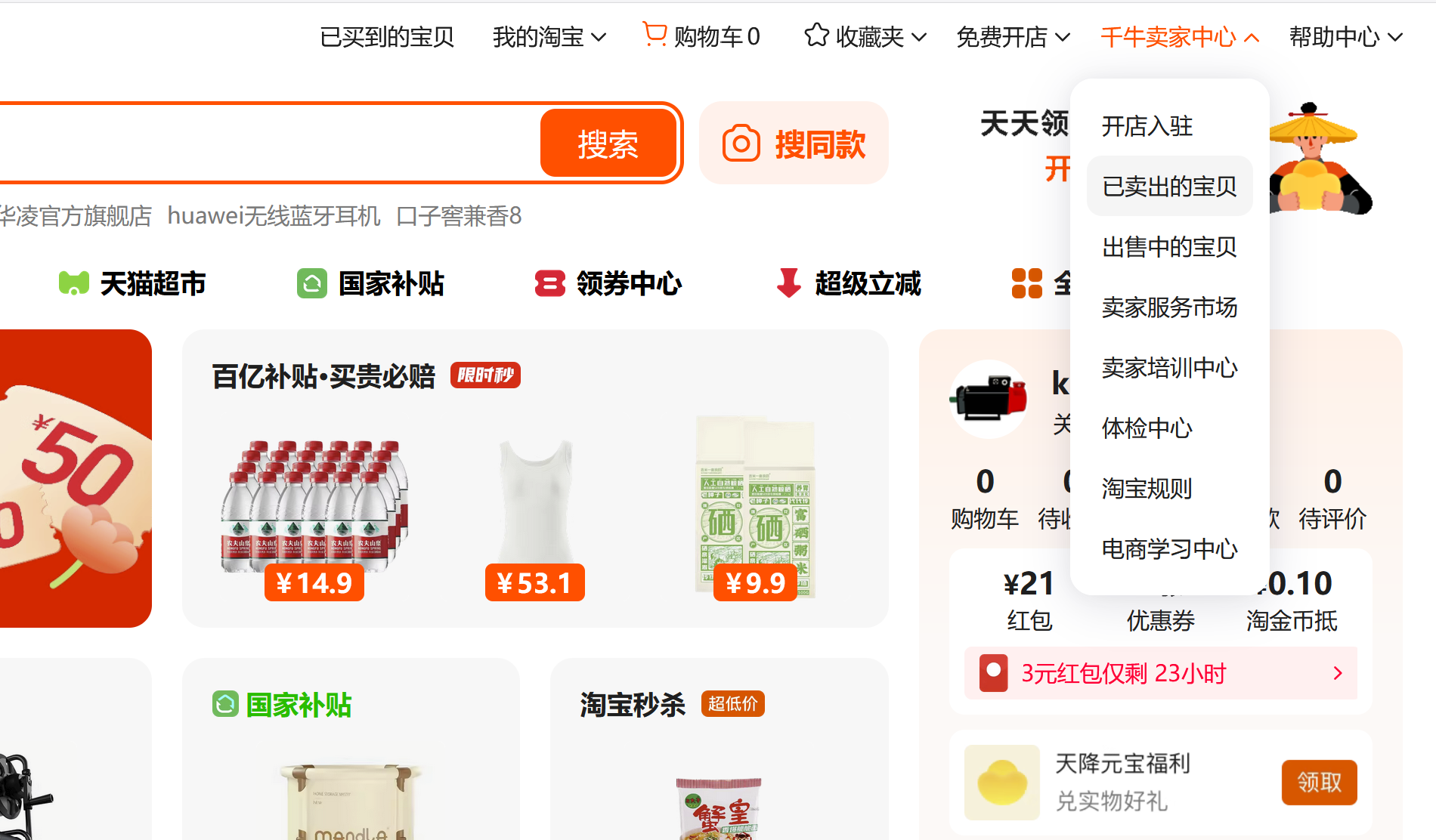 登录淘宝,点击右上角-“千牛卖家中心”-“已卖出的宝贝”